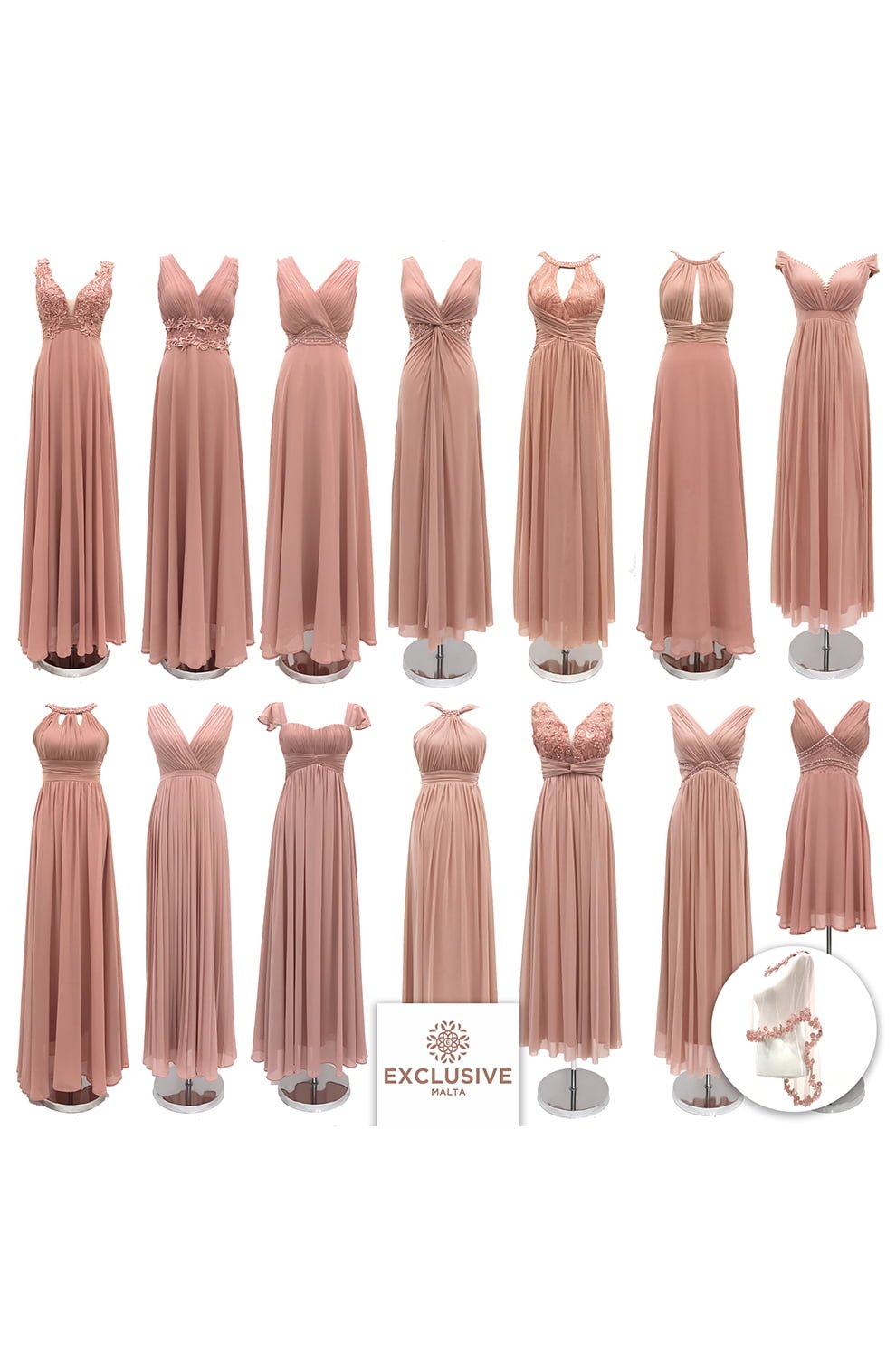 Material: Chiffon. – Sizes: 6UK till 20UK. – Price range from €60 till €93.